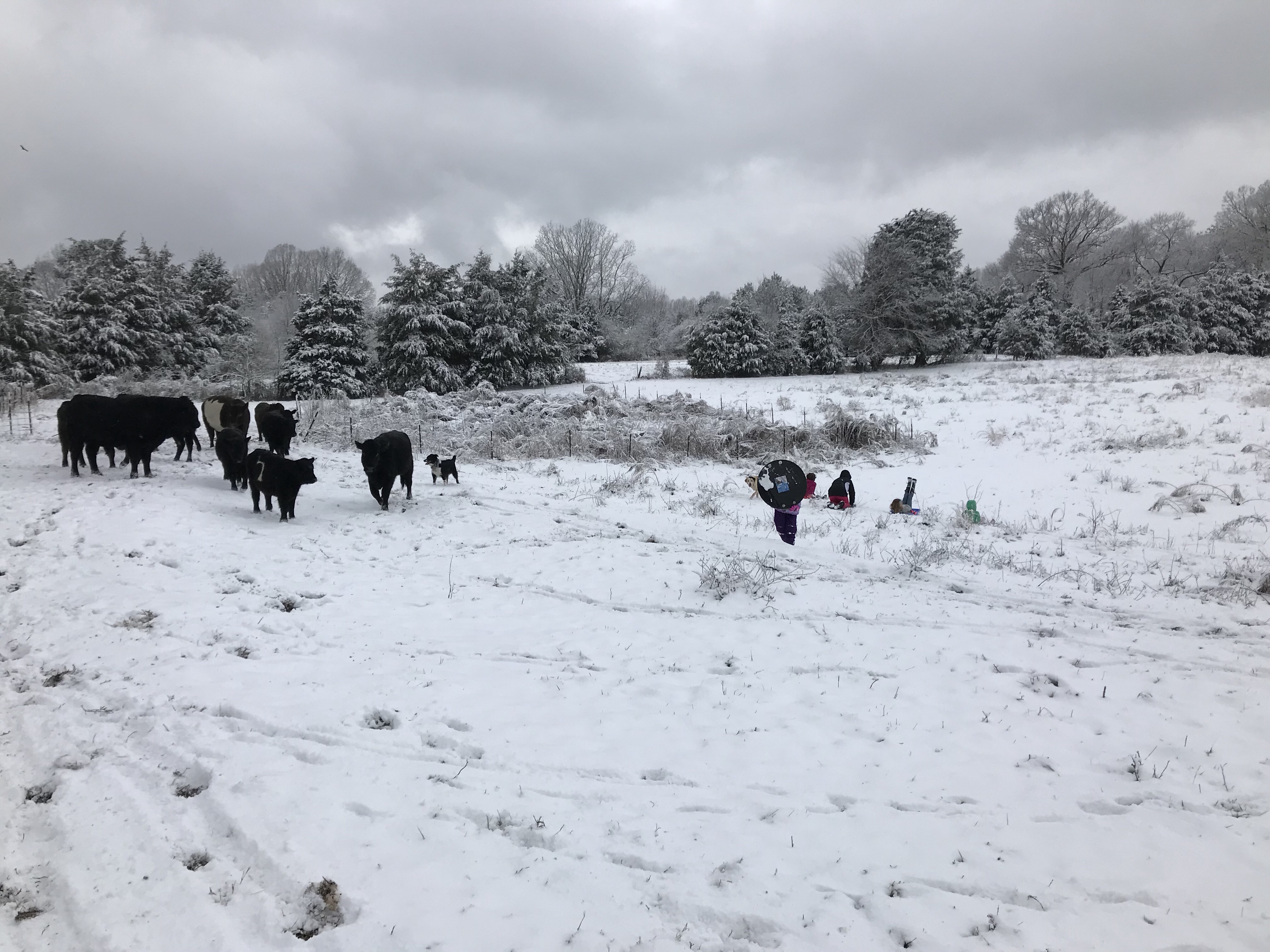 A very rare snow day in the south calls for sledding with cows. Also hot chocolate, popcorn, and chili!