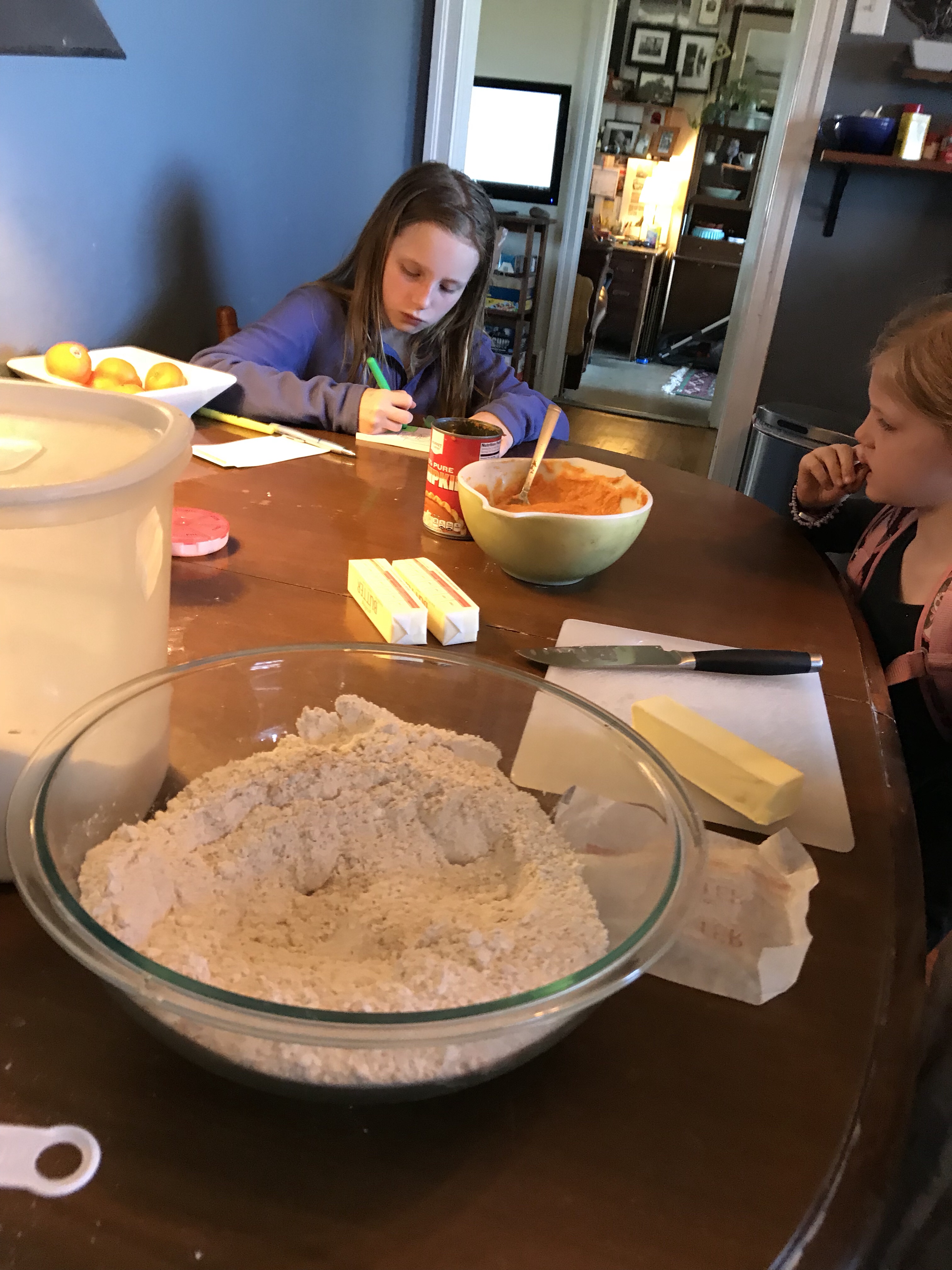 Getting ready to eat and crochet .