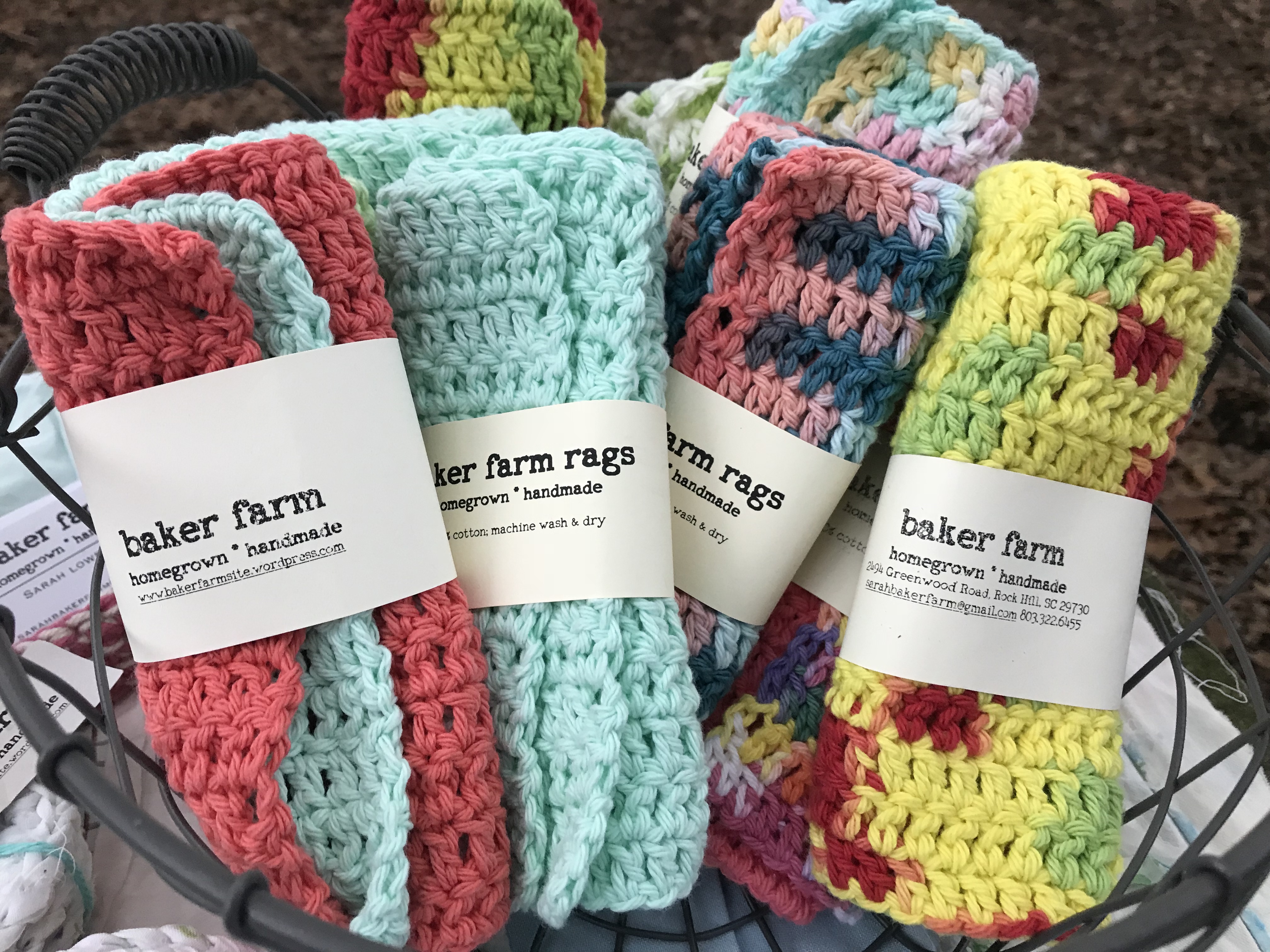 These little rags… one of the first things I sold. Still one of my best sellers and my personal favorite since I use nothing else in our kitchen. Crocheting these never gets old, especially with all the color choices of cotton yarn. It’s almost therapeutic to be able to make these lovely rows of stitches.